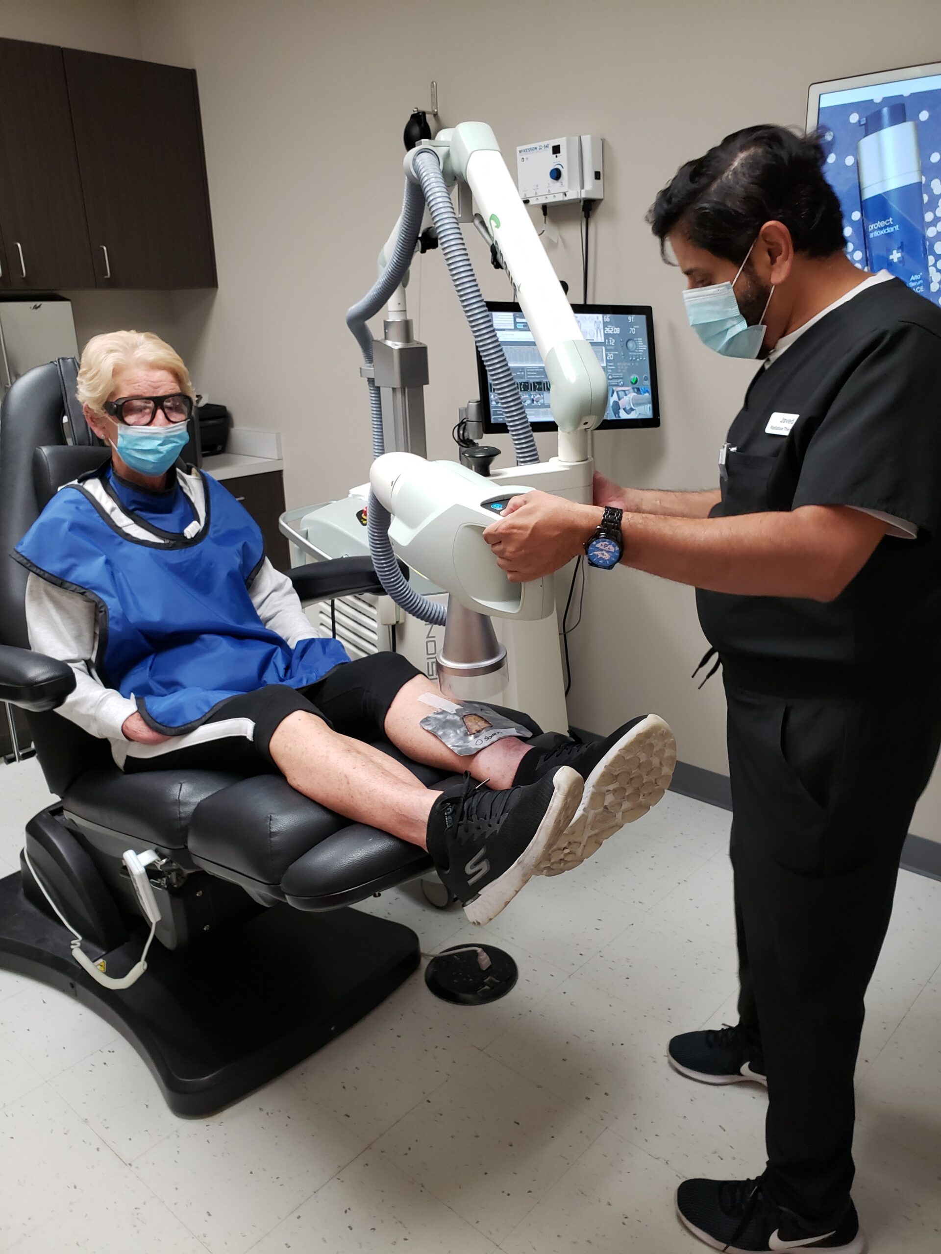 Treatment for squamous cell skin cancer (SCC) depends on the size, stage, and location of the cancer, as well as the patient’s overall health. Common treatments include surgical excision, where the cancer and some surrounding healthy skin are removed, and Mohs surgery, where the cancer is taken out layer by layer and checked under a microscope until no cancer cells remain. Other options include cryotherapy, which freezes and destroys the cancer with liquid nitrogen, and special creams that may be used for very small or early SCCs. Another option is Image-Guided Superficial Radiation Therapy (IGSRT). This treatment uses precise, low-dose radiation to target the tumor while protecting healthy skin. IGSRT can reduce scarring and is especially helpful for cancers on sensitive or visible areas, such as the face.